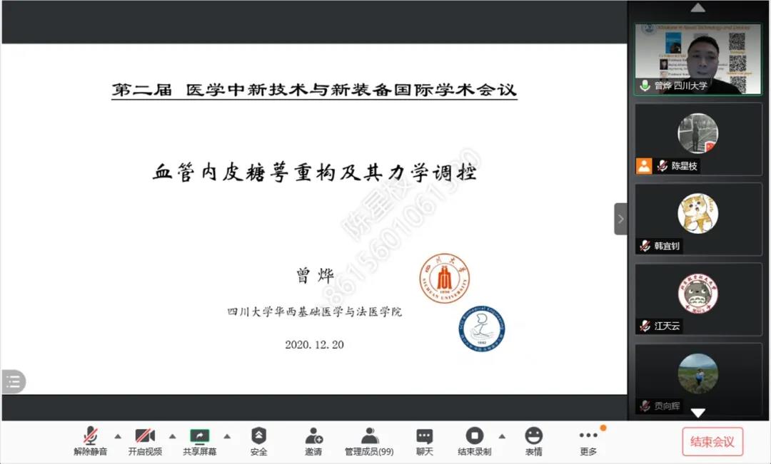 12月20日19:00-20:00,在北京市自然科学基金委对外合作交流项目的资助下,第二届“医学中新技术与新装备”国际学术会议——分会场邀请报告于腾讯会议平台线上成功召开。