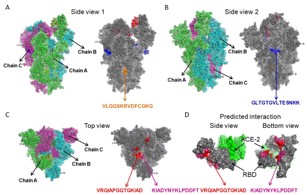 图2 A.B.位于棘突蛋白‘树干’上的B细胞表位;