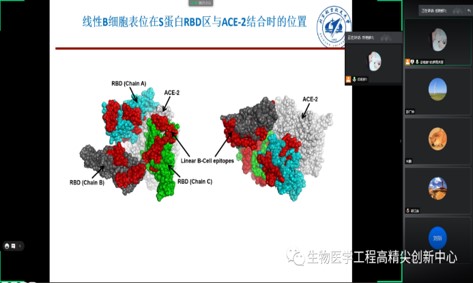 张靖教授以“2019新型冠状病毒线性B细胞表位肽疫苗的研发”为讲座题目,深入浅出地宣教了新冠病毒的形态、致病机理、B细胞表位肽鉴定疫苗开发的原理与进展,并与线上线下的观众进行了互动交流,分享自己的科研经验。
