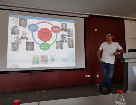 报告开始,由刘老师对Nashat Abumaria教授作介绍。Nashat Abumaria(那德)博士,2001 年本科毕业于约旦Jordan大学药剂学系获药剂学专业,后赴德国马普所国际研究学校和哥廷根大学神经学系攻读博士学位并于2006年获得神经科学博士学位。2006-2007年于德国灵长类研究中心临床神经生物学实验室German Primate Center从事博士后研究,之后加入清华大学医学院学习和记忆研究中心从事博士后研究工作并于2011年晋升为清华大学医学院副研究员。2015年加入复旦大学医学院脑科研究所并成为IOBS和实验动物中心的双聘研究员。那德教授在国际一流期刊发表论文20篇;获得过哥廷根大学奖学金、下萨克森州政府christophi -lichtenberg助学金、中国博士后基金、国自然青年基金等多项荣誉;并是Cellular and Molecular Neurobiology, Frontier in Molecular Neuroscience等期刊编辑委员会成员,同时也是多个国际期刊的审稿人。那德教授关注于研究情绪化记忆如何编码、存储和提取,理解情绪记忆相对于普通记忆为何更加强劲持久等问题,通过应用行为学(恐惧条件记忆和非厌恶性学习任务)、生理学和分子生物学(光遗传学,shRNA,遗传药理学)的技术途径来研究情感记忆的神经基础。