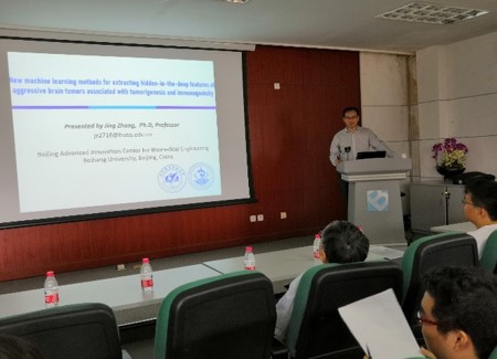 2019年9月6日上午10:00,北京亚洲成人在线一二三四五六区生物医学工程高精尖创新中心的张靖教授在北航逸夫科学楼416,作了题为“New machine learning methods for extracting hidden-in-the-deep features of aggressive brain tumors associated with tumorigenesis and immunogenicity”的学术报告,报告会由北航生物医学工程高精尖创新中心的张光磊副教授和刘晓冬教授主持。
