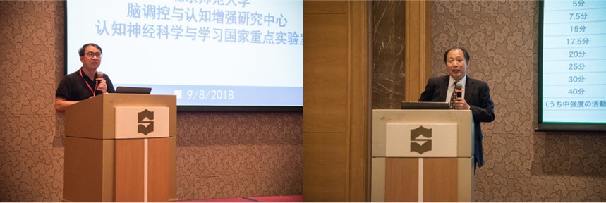 图1 樊瑜波教授主持开幕式(左)以及励建安教授作大会报告(右)