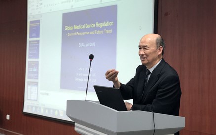 2018年4月10日,美国FDA前官员林秋雄博士莅临北航生医高精尖中心,首先林秋雄在北航沙河校区为本科学生开展题为《医材研发之国际发展趋势及案例分享》讲座,详细介绍了目前全球医疗器械市场增长趋势已经推动创新医疗设备发展的因素,同时林博士还以美国平价医疗法案(ACA)为例,分析了其对医疗设备开发的影响。 4月11日,林博士在逸夫科学馆317会议室为生物与医学工程学院及高精尖创新中心的老师及学生开展题为《 Medical Device Development from Idea to Commercialization》(医疗器械从观念到商业化的发展)的讲座,他提到关于医疗器械的创新理念既令人兴奋,又让人难以承受。一个成功的医疗器械产品的开发不仅需要优化的工程设计工作,还需要临床、监管、市场营销和商业专业知识。如果发明者决定保持这项技术的所有权,发明者将面临一系列的障碍,从获得额外的资金来开发设备,并最终实现设备产品的商业化和市场营销。