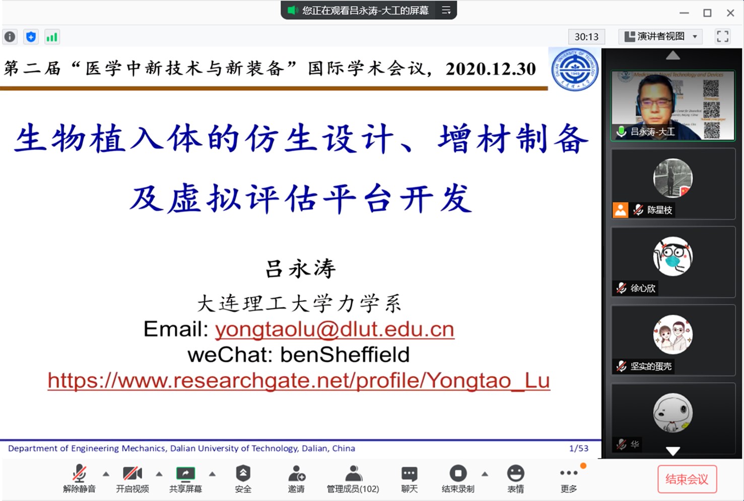 12月30日19:00-20:00,在北京市自然科学基金委对外合作交流项目的资助下,第二届“医学中新技术与新装备”国际学术会议——分会场邀请报告于腾讯会议平台线上成功召开。