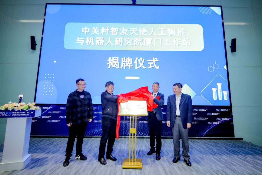 在揭牌仪式环节,北航机器人研究所名誉所长、中关村智友研究院院长王田苗教授与中关村大学科技园联盟理事长、北航天汇孵化器董事长李军上台揭牌,中关村智友天使人工智能与机器人研究院厦门工作站正式落地。厦门市科学技术局党组书记、局长孔曙光,同安区工业和信息化局副局长洪靖超上台见证。工作站未来将在生物医用材料、医疗器械以及新的人工智能的治疗方法等方面,有更为深入的合作,积极探索科技成果转化路径,携手打造创新生态。