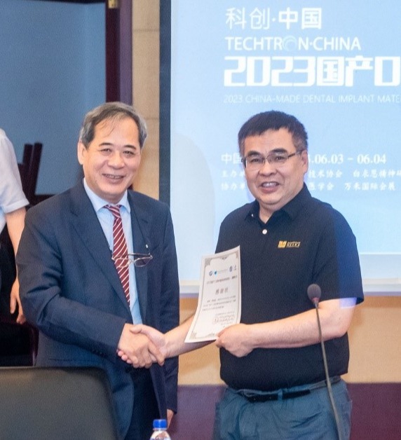 在论坛结尾,大会名誉主席王兴教授对各位授课专家专题汇报进行了总结,数字化时代未来已来,王兴教授表示数字化技术、人工智能技术对于口腔诊疗的优势毋庸置疑,医工交叉学科的研究对于口腔医学的进步举足轻重,未来的口腔医学将在数字化技术辅助下实现精准诊疗。最后,柳忠豪教授作为本次会议的执行主席,对莅临本次会议的各位领导、专家教授、各位参展商及会议工作人员表示衷心的感谢,本次“2023国产口腔种植体材料研发高峰论坛”圆满成功!