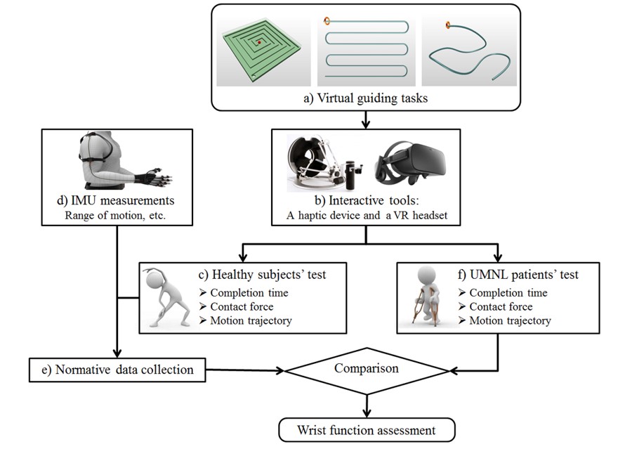 日前,北京市生物医学工程高精尖创新中心樊瑜波教授团队首次将触力反馈结合虚拟现实的先进技术应用于脑卒中患者手腕功能精细动作的康复训练和评测(Design of virtual guiding tasks with haptic feedback for assessing the wrist motor function of patients with upper motor neuron lesions),该成果由北京亚洲成人在线一二三四五六区生物与医学工程学院、北京市生物医学工程高精尖中心与国家康复辅具研究中心合作研究,成果发表于著名的康复领域期刊《IEEE Transactions on Neural Systems and Rehabilitation Engineering》上(Doi 10.1109/TNSRE.2019.2909287,康复工程领域排名第一),北航生物与医学工程学院助理教授刘笑宇博士为论文第一作者,樊瑜波教授为通讯作者。