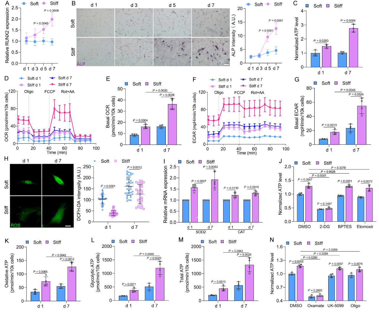 综上所述,该研究表明细胞外基质刚度可通过YAP介导的能量代谢调节来增强间充质干细胞的成骨能力。该研究进一步深化了力学因素调控间充质干细胞命运的理解,同时为骨再生领域中生物活性材料设计提供新的思路。